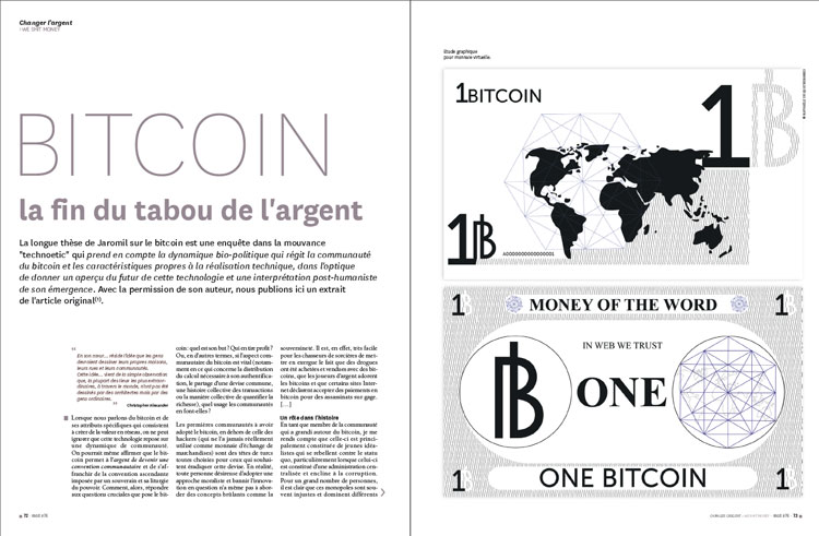 (1) L’intégralité de l’article (en anglais) peut être téléchargée au format PDF sur: https://files.dyne.org/readers/Bitcoin_end_of_taboo_on_money.pdf