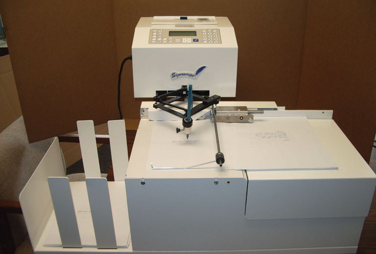 Ghostwriter. Le « prête-plume » : bras mécanique signant un document. Avec l’autorisation de la Société Autopen de la Damilic Corporation. Photo: D. R.