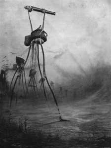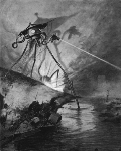 Il est évident qu’ils les ont exploités, qu’ils ont procédé à de la rétro-ingénierie comme on dit aujourd’hui. On imagine l’énorme travail que n’auront pas manqué de fournir, peut-être en vain, les ingénieurs et savants pour tenter de percer le mystère de ces machines. Que dire de la course effrénée à laquelle les pays occidentaux, principalement les États-Unis, la France, l’Allemagne ou encore la Russie, se seront livrés dans le but d’arracher à la Grande-Bretagne quelques-uns des secrets des technologies martiennes ? Comment Wells a-t-il pu oublier de décrire les suites de l’invasion, à défaut de répondre à toutes les questions qu’elle soulevait (17) ? (Pour certains, la question serait plutôt : comment Wells a-t-il pu décrire en 1898 des événements — et a fortiori les conséquences politico-technologiques d’événements — censés s’être déroulés au début du 20ème siècle ? Argument bien léger : s’il y a un auteur qui peut se permettre de revenir publier en 1898 un livre sur des événements datant des années 1900, c’est bien l’auteur de The Time Machine !)