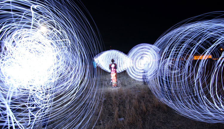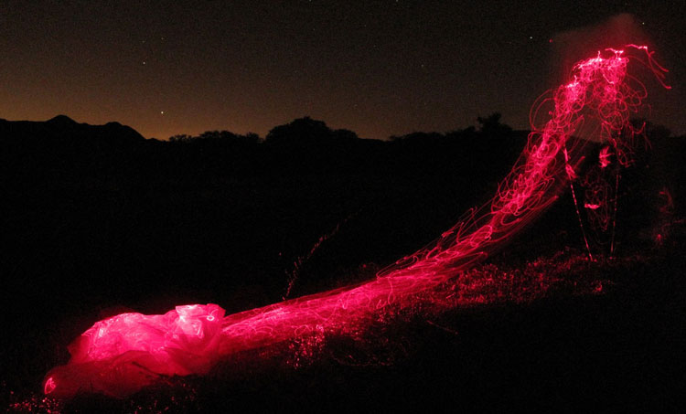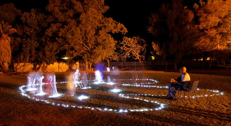 Marcus Neustetter, One Woman at the Centre of the Universe. Public-performeurs en interaction avec des cordons lumineux pour raconter l’histoire d’une femme, Sutherland, Afrique du Sud, 2014. Photo: D.R.
