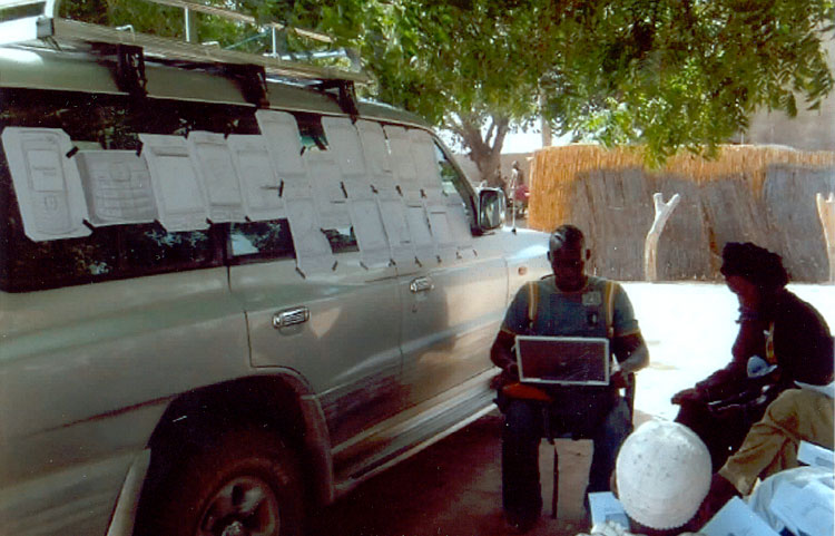 Acacia-CRDI. Simulation avec des étudiants en zone rurale. 2007. Photo : © Moussa Déthié Sarr.