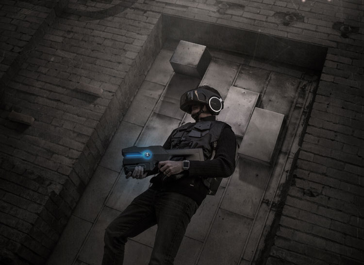 Les créateurs de The Void (pour Visions Of Infinite Dimensions), eux, ont parié sur la réalité mixte. Un choix logique dans un environnement ludique. En effet, qui dit parc d’attractions dit  « interactions ». Étalé sur un espace de trois hectares encore en cours de réalisation (le lieu doit ouvrir cet été), le parc bénéficie de cloisons modulables et d’accessoires qui peuvent être constamment modifiés. Équipés de casques numériques de type Hololens et harnachés d’un ordinateur contenu dans un sac à dos, six à huit gamers pourront se déplacer et vivre en direct l’expérience de la réalité mixte. Sur leurs écrans apparaîtront divers décors et éléments en 3D, tandis que les autres joueurs voient une version modélisée numérique de leurs adversaires. Croisement entre une lasergame arena ou une partie de paint-ball classique, le combat dans The Void comporte toutes les sensations originales censément ressenties par un joueur : tactilité de son environnement, effet de vertige sur des passerelles, impact des balles sur son corps. C’est là tout l’intérêt de la réalité mixte, permettant de vivre l’expérience du virtuel, mais également de déclencher des actions dans le monde réel (1). Pour ce faire, le joueur est équipé d’un casque à écrans OLED incurvés d’une résolution de 1080p, de prothèses audios THX, de micros pour les communications entre joueurs et d’une veste avec retour de force intégré. La réalité mixte se présente donc ici comme une véritable passerelle entre le monde réel et les environnements virtuels (2).