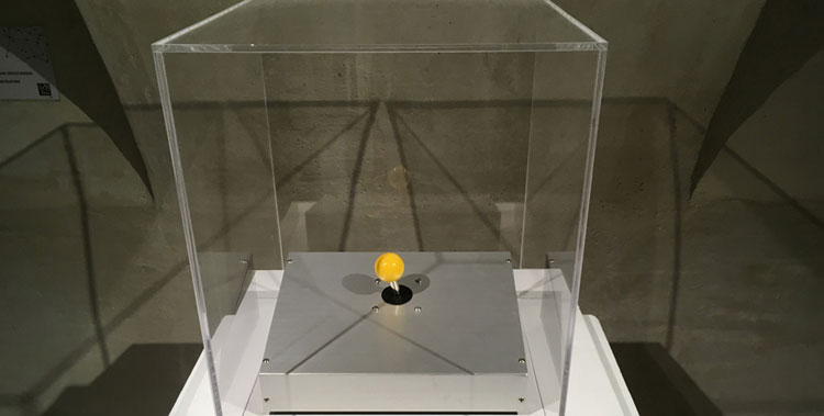 Il suffit d’une présentation décalée, d’un détournement ou d’une mise en abîme, pour amplifier l’obsolescence d’un objet technologique. Comme une « mise sous cloche », par exemple. Antonin Fourneau le démontre de manière dépouillée, mais efficace, en nous montrant les mouvements frénétiques d’un joystick en roue libre, pourrait-on dire ; c’est-à-dire sans être relié à un ordi, simplement « exposer » dans un cube de plexiglas (Ghostpad).