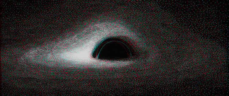 En phase avec cette thématique, parmi les artistes invités cette année, on retrouve Flavien Théry qui nous propose d’écouter les étoiles au travers de son installation Messenger, de faire une exploration sonore de la surface martienne à défaut de pouvoir y aller physiquement (Sound reveries of trips we won’t go), mais aussi de « voir » un trou noir sous la forme d’une tapisserie stéréoscopique en écho à la première représentation informatique de cet objet céleste énigmatique réalisé par l’astrophysicien Jean-Pierre Luminet (Jean-Pierre contemplant le trou noir).