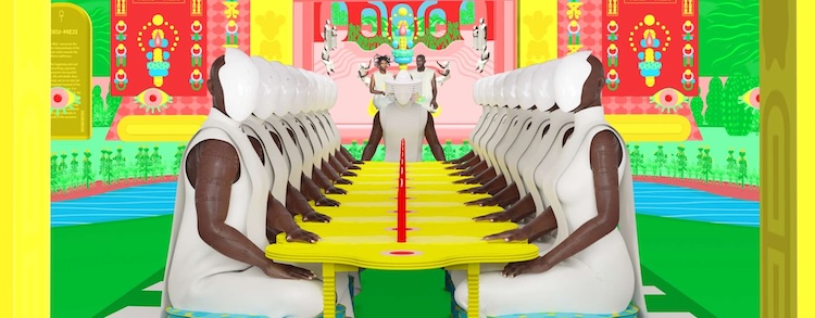 Cette exposition offre une réponse en trois temps. Le premier intitulé Techniques divinatoires réunit des œuvres qui reprennent et mettent en scène des objets, rituels et protocoles censés laisser entrevoir l’à venir. Les tarots « numériques » de Räf & Clö (Tarötmatön) et ceux de Suzanne Treister (Hexen 2.0 et Hexen 5.0) qui retracent l’histoire d’une contre-culture technologique. L’astrologie appliquée à la prospective immobilière d’Alice Bucknell (Align Properties). Ifá, le système divinatoire des Yorubas aussi complexe que le Yi King chinois, en filigrane dans l’installation vidéo de Pierre-Christophe Gam (The Sanctuary of Dreams) qui combine paysages sonores, dessins, réalité augmentée et animations 3D…