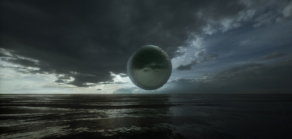 L’installation sonore de Jens Settergen, GhostBlind Loading, comporte également des miroirs ainsi que des pierres et des feuilles (mais pas de ciseaux). Ce décor est la mise en scène d’un dispositif nous permettant d’écouter l’invisible, c’est-à-dire les sons et activités électromagnétiques des appareils électroménagers « intelligents » et autres objets connectés qui ont envahi notre quotidien. C’est un autre élément qui est au centre de l’installation vidéo de Jakob Kudsk Steensen : l’eau. Indispensable à la vie, composante majoritaire de notre masse corporelle, mais aussi à l’origine pour certaines personnes de peur irrationnelle : Aquaphobia est une suite de paysages virtuels fantasmagoriques, de couleur verte bleutée, comme échappés de jeux vidéos ou d’un film d’anticipation