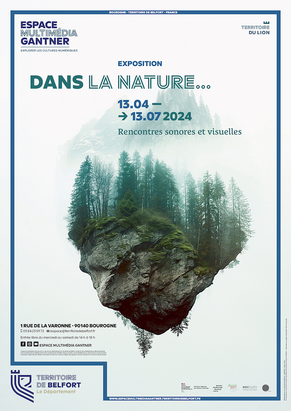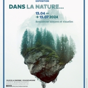 Articulée autour de nos sens que sont la vue et l’ouïe, l’exposition Dans la nature… chemine entre montagnes, mers et forêts, glaciers et îles, à la découverte d’un environnement de plus en plus fragilisé lorsqu’il n’est pas menacé… En utilisant différentes technologies, high tech ou bricolées, les artistes nous invitent à une rencontre singulière avec la nature dans ce qu’elle a d’invisible, d’inaudible, de caché et parfois de fantasmé… Rémy Bendernous propose de découvrir le site du Grand Cor (2584 m d’altitude) en Suisse avec un film produit par une caméra éolienne, et se laisser transporter par le sifflement du vent… Felix Blume nous immerge dans une pièce qui bourdonne du son des vols de 250 abeilles diffusés par autant de petits haut-parleurs… Stéphanie Roland nous montre des îles dont la cartographie vidéo révèle la date future d’engloutissement. Sébastien Robert nous donne non pas à voir, mais à entendre les aurores boréales perturbées par les ondes de notre ultra-communication… Pali Meursault & Thomas Tilly nous invitent à écouter le son des glaciers et des témoignages sur les effets du réchauffement climatique sur le milieu de la haute-montagne. Anne Zimmermann surprend et nous surprend avec les captures vidéos d’animaux qui rôdent la nuit dans la forêt. Silvi Simon joue les magiciens en fixant sur image l’apparition évanescente de végétaux.