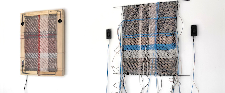 L’intitulé et le lieu trahissent l’intention de Cécile Babiole : se servir de câbles électriques de différentes couleurs pour faire du tissage. L’entrecroisement de ces fils se répète de manière algorithmique pour former un motif selon un « pattern » préétabli ». Couplés à des cartes-sons, des amplificateurs et des haut-parleurs, les câbles transmettent des signaux audio, des boucles (loops) basées sur les motifs de chacun de ces tissages.