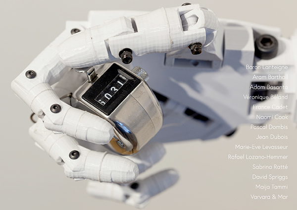 Alain Thibault, Dominique Moulon et Catherine Bédard ont sélectionné des œuvres issues de processus décisionnels extirpés de l’invisible pour nous projeter dans un futur immédiat qui nous appartient encore pour un moment… Des installations vidéos et dispositifs robotiques conçus par Baron Lanteigne, Aram Bartholl, Adam Basanta, Véronique Béland, France Cadet, Naomi Cook, Pascal Dombis, Jean Dubois, Marie-Ève Levasseur, Rafael Lozano-Hemmer, Sabrina Ratté, David Spriggs, Maija Tammi, Varvara & Mar…