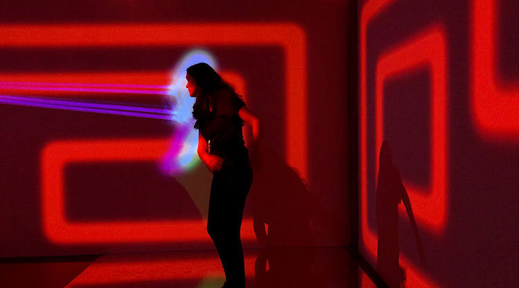 L’interaction et l’immersivité au service de l’illusion d’optique. On pourrait résumer ainsi Illusion, l’installation conçue par Laia Cabrera et Isabelle Duverger, cinéastes et artistes plasticiennes. Combinant différentes techniques (mapping, miroir, réalité augmentée, vidéo, musique, animation), leur dispositif est une expérience limite, entre voyage sensoriel et labyrinthe numérique, où le public est invité à se perdre et à jouer « activement » dans un maelstrom de formes, de couleurs et de sons.