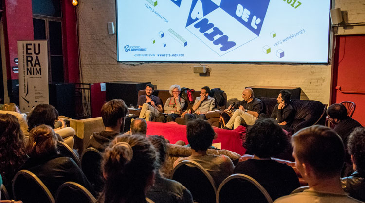 Le vidéo-mapping est désormais une pratique artistique reconnue, présente dans de nombreux événements et festivals. Mais se pose la question : en quoi le vidéo-mapping entre-t-il dans le champ de l’écriture du film d’animation ? Pour essayer d’y répondre, une table ronde organisée en collaboration avec la NEF (Nouvelles Écritures pour le Film d’animation) réunissait des artistes, chercheurs et réalisateurs (Marie-Anne Fontenier, Mo Assem, Ludovic Burcyzkowski, Sébastien Denis, Domenico Spano, Maxime Thiébault). L’occasion de mettre en perspective les ressorts de ce type de création, d’en souligner certaines filiations historiques (voire pré-technologiques), d’en montrer les évolutions, de s’interroger sur la problématique du cadre et du support de diffusion qui caractérise le vidéo-mapping.