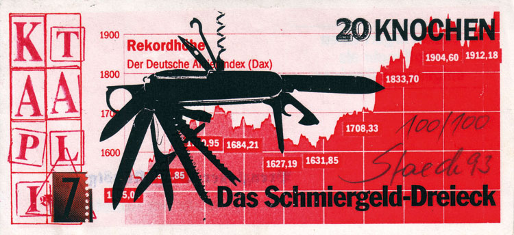One thing is clear: the time of merely complaining about one’s precarity is over. This is the age of monetary experimentation. The premise of MoneyLab, this issue of MCD and many other initiatives investigate the multiplicity of complementary revenue models that do not have to function as overnight alternatives for the hegemonic payment systems. Starting off with local exchange trading systems, we can then move on to possibilities and traps of crowdfunding (before the artwork has been produced), to bitcoin and other crypto-currencies (payment systems after the artwork has been finished), to live payments in special currencies designed for online games. Please join the debates about their architectures and do not leave the geeks alone. Let’s start collectives, cooperatives and other forms of autonomous organization in order to counter the neo-liberal role model of the ‘entrepreneur’.