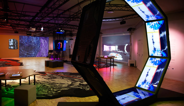 Après avoir présenté ses œuvres interactives en 3D au Centre Pompidou à Paris en 2014, Pia MYrvoLD en propose une deuxième « version », reconfigurée, à la Vitenfabrikken de Sandnes en Norvège. Dans le hall de ce lieu dédié à l’art et à la science, dans un esprit proche de celui de La Villette, on retrouve Stargate. Une porte heptagonale où défilent en boucle des images de synthèse colorées. Mais tout se passe à l’étage, dans une salle obscure. La luminosité des écrans se détache dans la pénombre. Les couleurs éclatent. Les formes se démultiplient. Les avatars tournoient. Les dispositifs de contrôle nous attendent. Nous sommes au cœur de la machine…